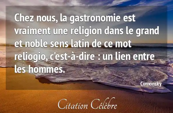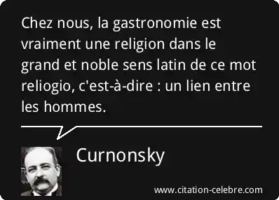 Chez nous, la gastronomie est vraiment une religion dans le grand et noble sens latin de ce mot reliogio, c'est-à-dire : un lien entre les hommes.