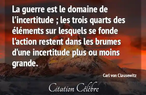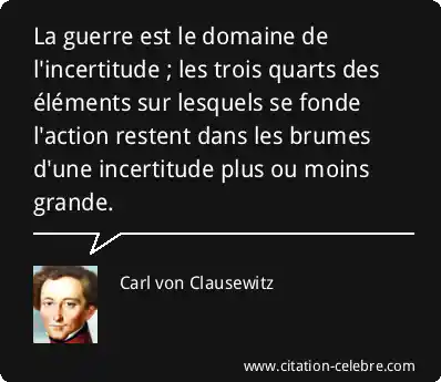 La guerre est le domaine de l'incertitude ; les trois quarts des éléments sur lesquels se fonde l'action restent dans les brumes d'une incertitude plus ou moins grande.