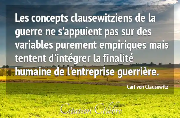 Les concepts clausewitziens de la guerre ne s'appuient pas sur des variables purement empiriques mais tentent d'intégrer la finalité humaine de l'entreprise guerrière.