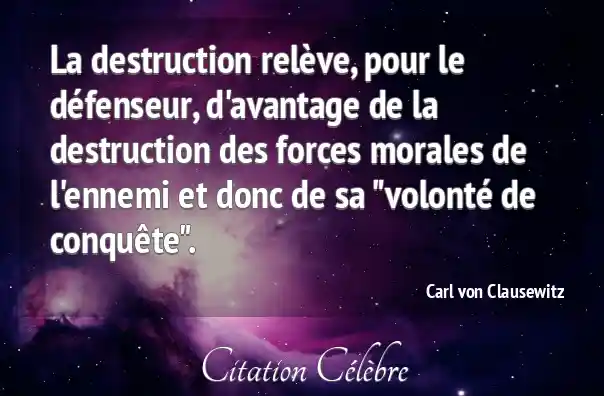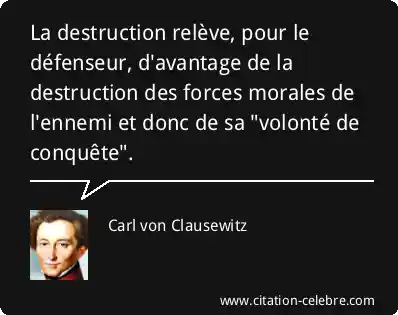 Citation Carl von Clausewitz ennemi : La destruction relève, pour le défenseur, d'avantage de la destruction...