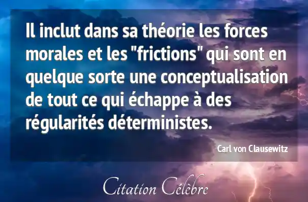 Il inclut dans sa théorie les forces morales et les "frictions" qui sont en quelque sorte une conceptualisation de tout ce qui échappe à des régularités déterministes.