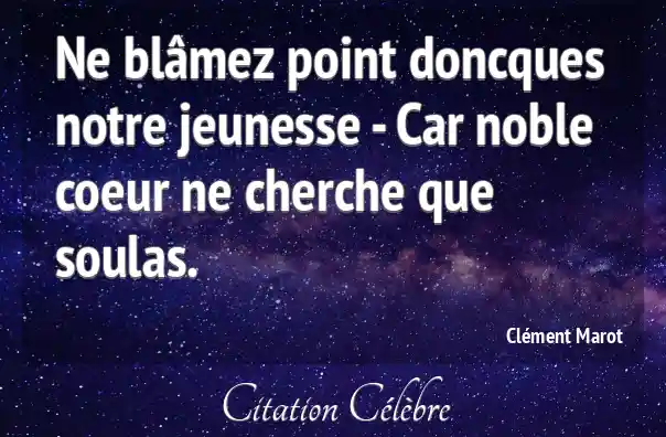 Ne blâmez point doncques notre jeunesse - Car noble coeur ne cherche que soulas.