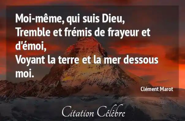 Moi-même, qui suis Dieu,Tremble et frémis de frayeur et d'émoi,Voyant la terre et la mer dessous moi.