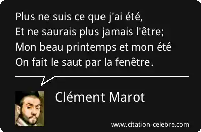 Plus ne suis ce que j'ai été,Et ne saurais plus jamais l'être;Mon beau printemps et mon étéOn fait le saut par la fenêtre.