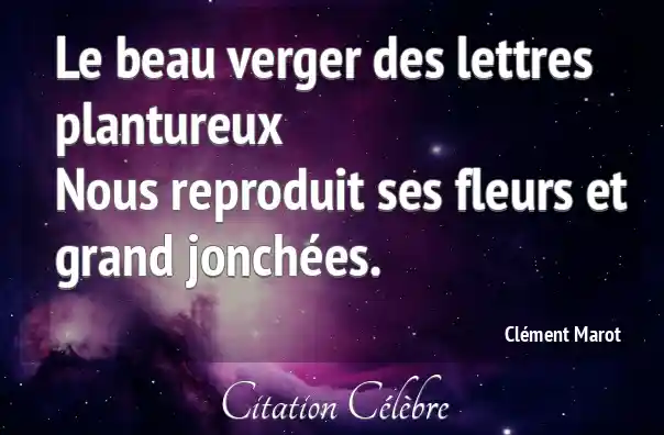 Le beau verger des lettres plantureuxNous reproduit ses fleurs et grand jonchées.