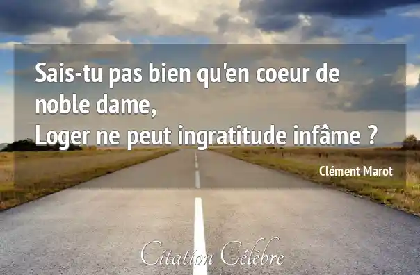Sais-tu pas bien qu'en coeur de noble dame,Loger ne peut ingratitude infâme ?