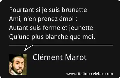 Citation Clément Marot moi : Pourtant si je suis brunetteAmi, n'en prenez émoi :Autant suis...