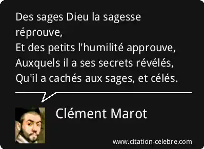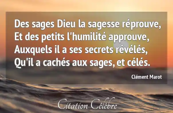 Des sages Dieu la sagesse réprouve,Et des petits l'humilité approuve,Auxquels il a ses secrets révélés,Qu'il a cachés aux sages, et célés.