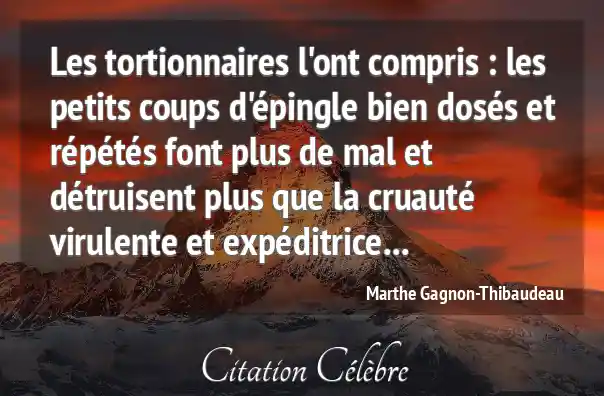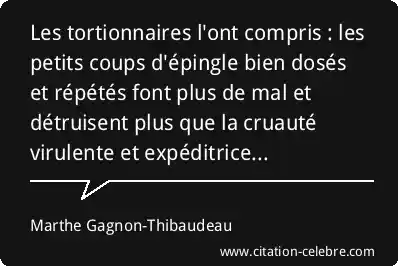 Les tortionnaires l'ont compris : les petits coups d'épingle bien dosés et répétés font plus de mal et détruisent plus que la cruauté virulente et expéditrice...