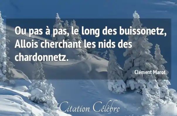 Ou pas à pas, le long des buissonetz, Allois cherchant les nids des chardonnetz.