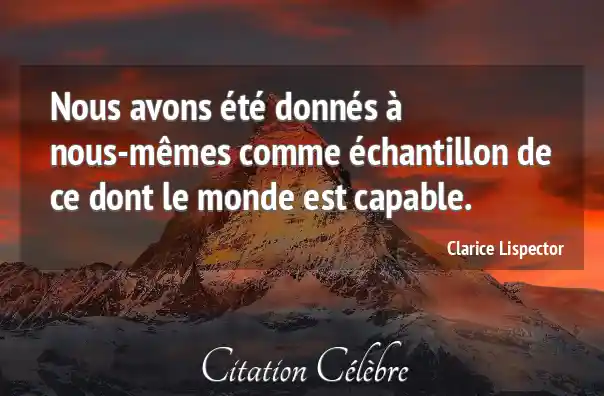 Nous avons été donnés à nous-mêmes comme échantillon de ce dont le monde est capable.