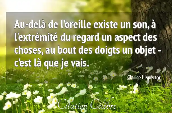 Au-delà de l'oreille existe un son, à l'extrémité du regard un aspect des choses, au bout des doigts un objet - c'est là que je vais.