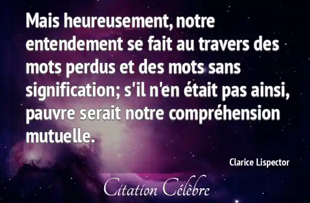 Mais heureusement, notre entendement se fait au travers des mots perdus et des mots sans signification; s'il n'en était pas ainsi, pauvre serait notre compréhension mutuelle.
