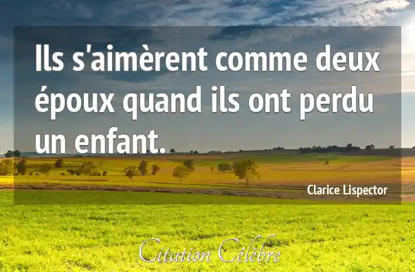 Ils s'aimèrent comme deux époux quand ils ont perdu un enfant.