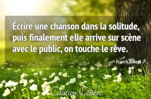 Écrire une chanson dans la solitude, puis finalement elle arrive sur scène avec le public, on touche le rêve.