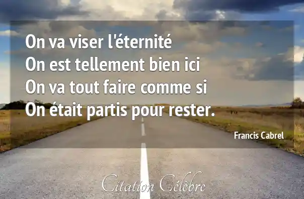 On va viser l'éternitéOn est tellement bien iciOn va tout faire comme siOn était partis pour rester.