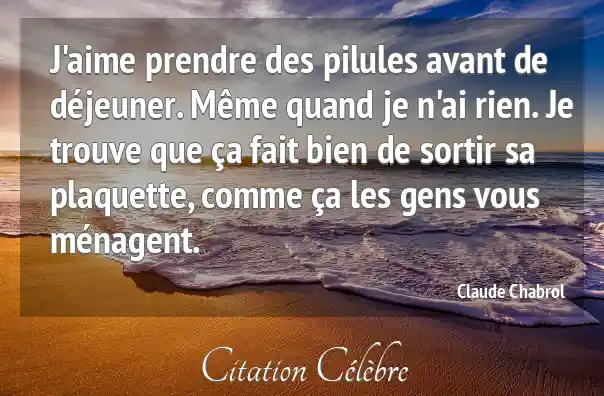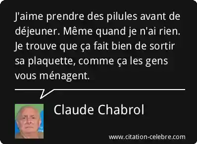 J'aime prendre des pilules avant de déjeuner. Même quand je n'ai rien. Je trouve que ça fait bien de sortir sa plaquette, comme ça les gens vous ménagent.