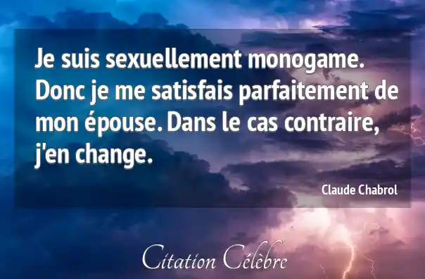 Je suis sexuellement monogame. Donc je me satisfais parfaitement de mon épouse. Dans le cas contraire, j'en change.