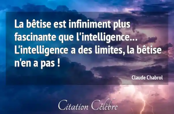 La bêtise est infiniment plus fascinante que l'intelligence... L'intelligence a des limites, la bêtise n'en a pas !
