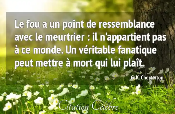 Le fou a un point de ressemblance avec le meurtrier : il n'appartient pas à ce monde. Un véritable fanatique peut mettre à mort qui lui plaît.