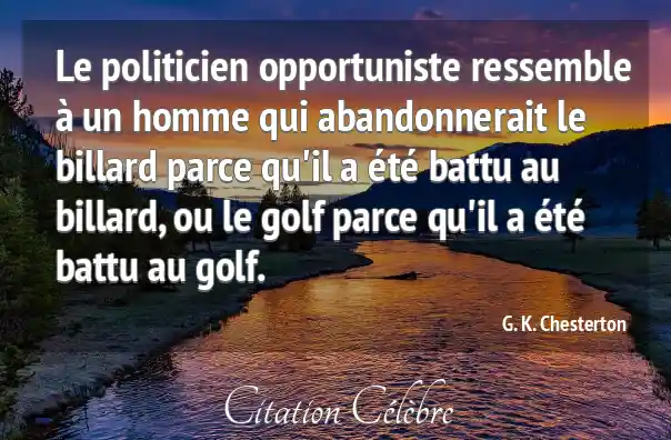 Le politicien opportuniste ressemble à un homme qui abandonnerait le billard parce qu'il a été battu au billard, ou le golf parce qu'il a été battu au golf.