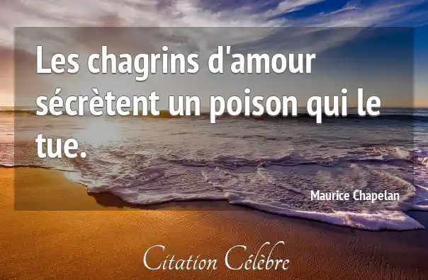 Les chagrins d'amour sécrètent un poison qui le tue.