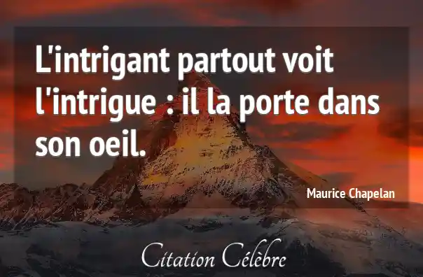 L'intrigant partout voit l'intrigue : il la porte dans son oeil.