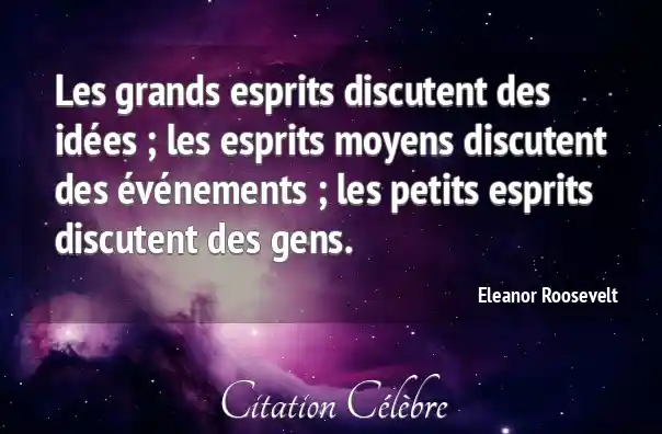 Cette célèbre citation établit une hiérarchie dans la nature des conversations humaines, reflétant ainsi la profondeur de la pensée de ceux qui y participent. Elle suggère que la qualité de notre esprit se mesure à l'objet de nos discussions. En substance :