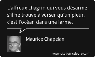 L'affreux chagrin qui vous désarme s'il ne trouve à verser qu'un pleur, c'est l'océan dans une larme.