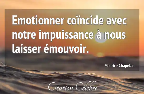 Emotionner coïncide avec notre impuissance à nous laisser émouvoir.