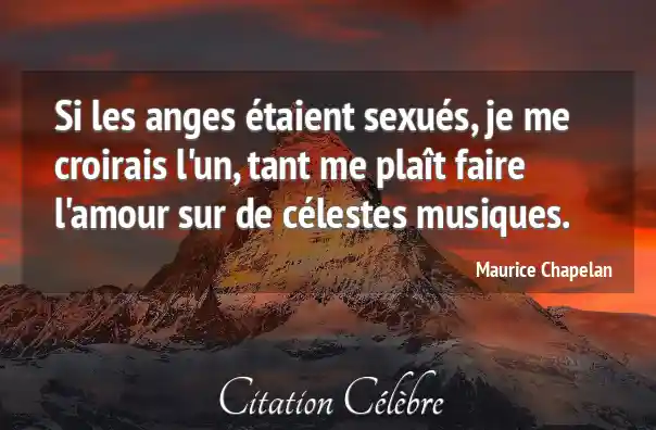 Si les anges étaient sexués, je me croirais l'un, tant me plaît faire l'amour sur de célestes musiques.