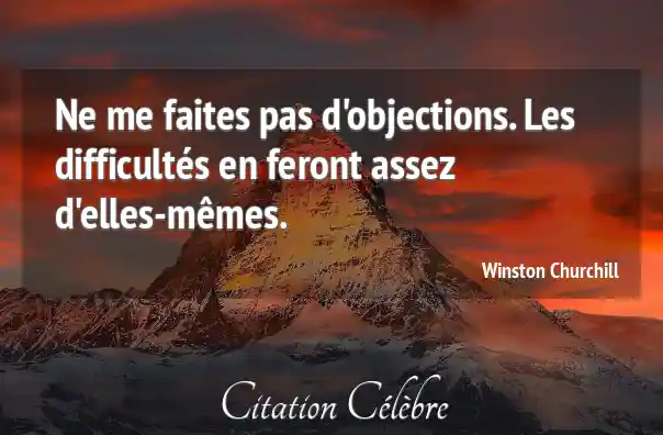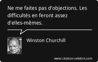 Ne me faites pas d'objections. Les difficultés en feront assez d'elles-mêmes.