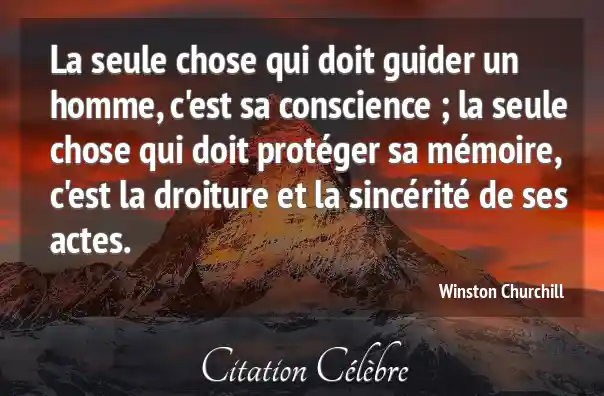 La seule chose qui doit guider un homme, c'est sa conscience ; la seule chose qui doit protéger sa mémoire, c'est la droiture et la sincérité de ses actes.