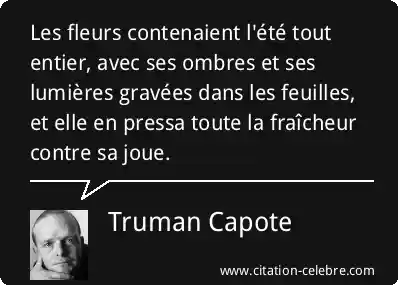 Les fleurs contenaient l'été tout entier, avec ses ombres et ses lumières gravées dans les feuilles, et elle en pressa toute la fraîcheur contre sa joue.