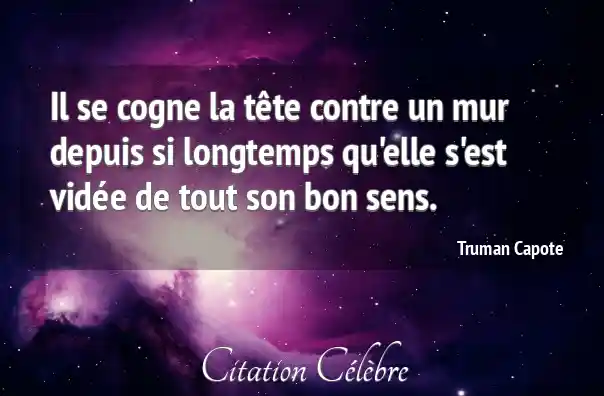 Il se cogne la tête contre un mur depuis si longtemps qu'elle s'est vidée de tout son bon sens.