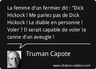 La femme d'un fermier dit : "Dick Hickock ! Me parlez pas de Dick Hickock ! Le diable en personne ! Voler ? Il serait capable de voler la canne d'un aveugle !