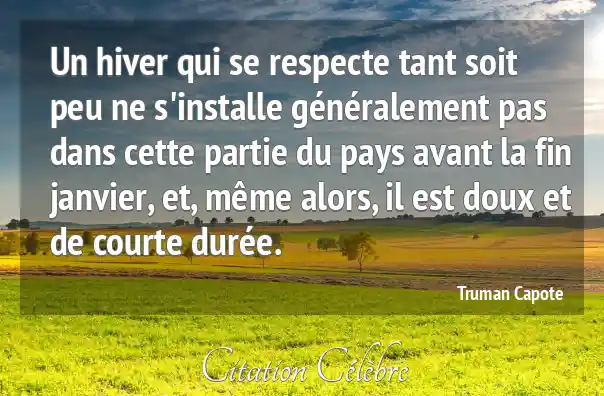Un hiver qui se respecte tant soit peu ne s'installe généralement pas dans cette partie du pays avant la fin janvier, et, même alors, il est doux et de courte durée.