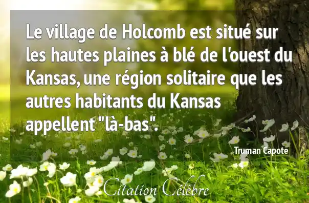 Le village de Holcomb est situé sur les hautes plaines à blé de l'ouest du Kansas, une région solitaire que les autres habitants du Kansas appellent "là-bas".