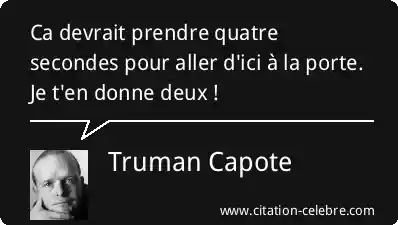 Ca devrait prendre quatre secondes pour aller d'ici à la porte. Je t'en donne deux !
