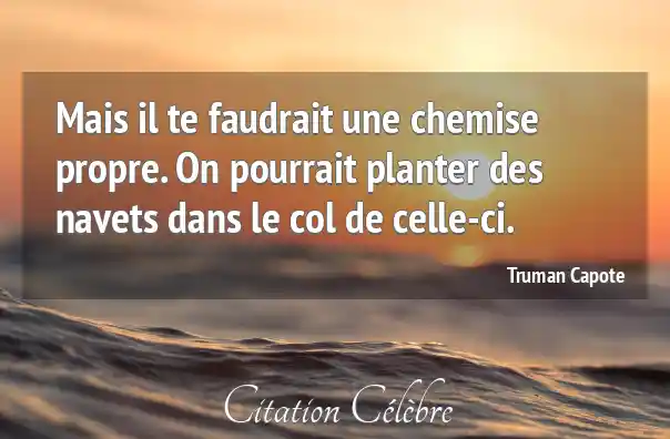 Mais il te faudrait une chemise propre. On pourrait planter des navets dans le col de celle-ci.