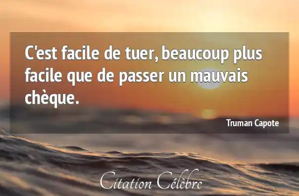 C'est facile de tuer, beaucoup plus facile que de passer un mauvais chèque.