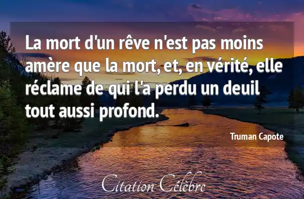 La mort d'un rêve n'est pas moins amère que la mort, et, en vérité, elle réclame de qui l'a perdu un deuil tout aussi profond.