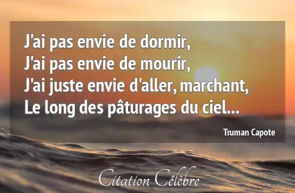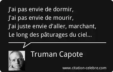 Citation Truman Capote mourir : J'ai pas envie de dormir,J'ai pas envie de mourir,J'ai juste...