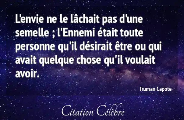 L'envie ne le lâchait pas d'une semelle ; l'Ennemi était toute personne qu'il désirait être ou qui avait quelque chose qu'il voulait avoir.