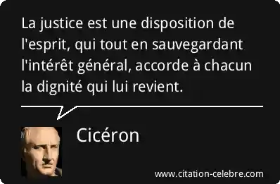 La justice est une disposition de l'esprit, qui tout en sauvegardant l'intérêt général, accorde à chacun la dignité qui lui revient.