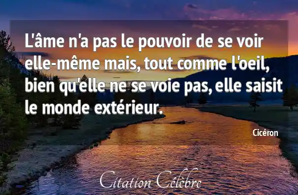 L'âme n'a pas le pouvoir de se voir elle-même mais, tout comme l'oeil, bien qu'elle ne se voie pas, elle saisit le monde extérieur.