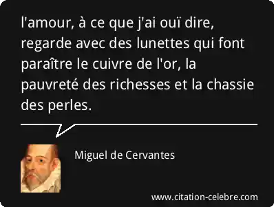 l'amour, à ce que j'ai ouï dire, regarde avec des lunettes qui font paraître le cuivre de l'or, la pauvreté des richesses et la chassie des perles.