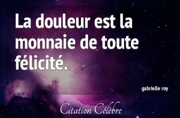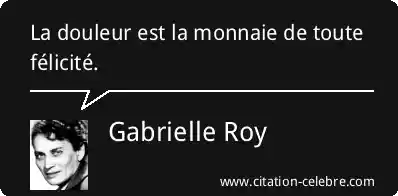 Citation Gabrielle Roy douleur : La douleur est la monnaie de toute félicité....