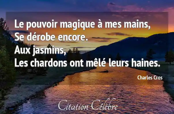 Le pouvoir magique à mes mains,Se dérobe encore. Aux jasmins,Les chardons ont mêlé leurs haines.