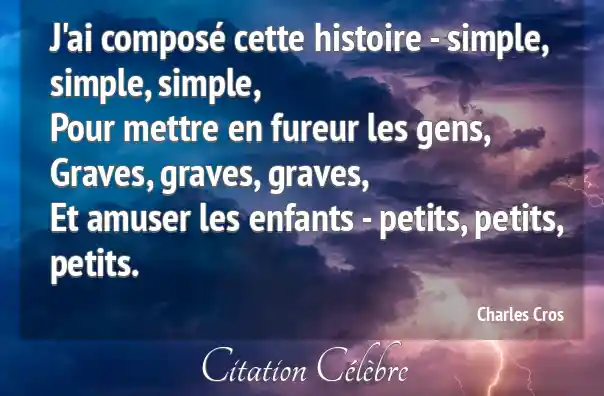 J'ai composé cette histoire - simple, simple, simple,Pour mettre en fureur les gens,Graves, graves, graves,Et amuser les enfants - petits, petits, petits.